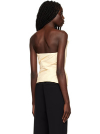Buffed faux-leather camisole. Draping and gathering throughout. · Straight neck · Zip closure at side seam · Low back · Full stretch denim lining Supplier color: Cream Body: 60% polyurethane, 40% polyester. Lining: 95% cotton, 5% elastane. Made in New Zealand 231438F111009