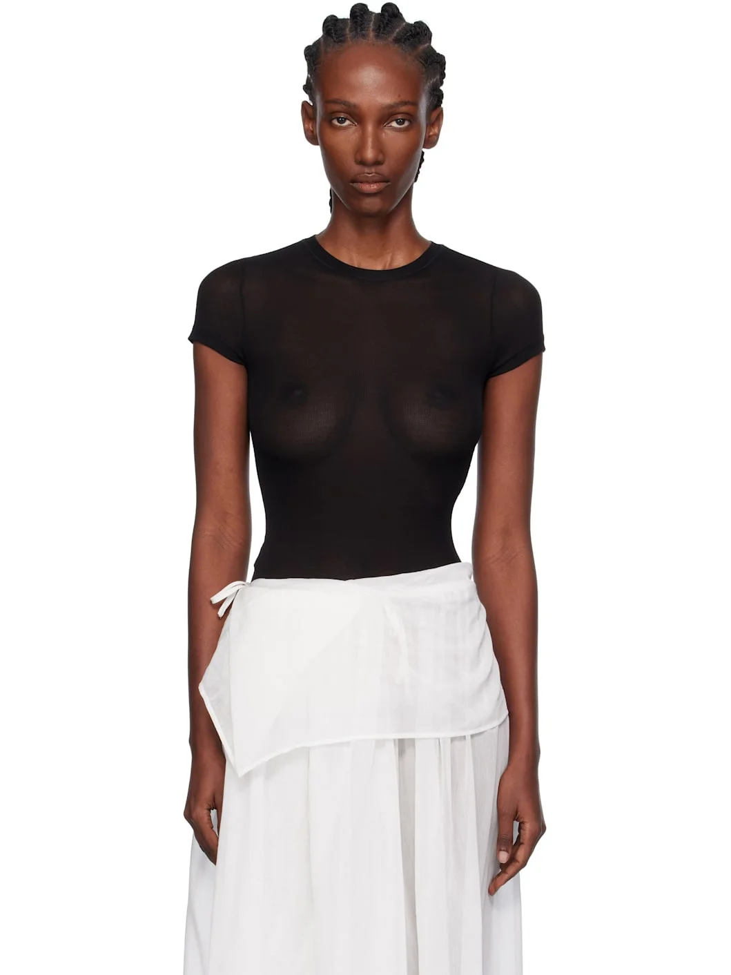 Sheer rib-knit stretch lyocell T-shirt. · Crewneck · Cropped hem · Cap sleeves Supplier color: Black 92% lyocell, 8% spandex. Made in New Zealand 252438F110009