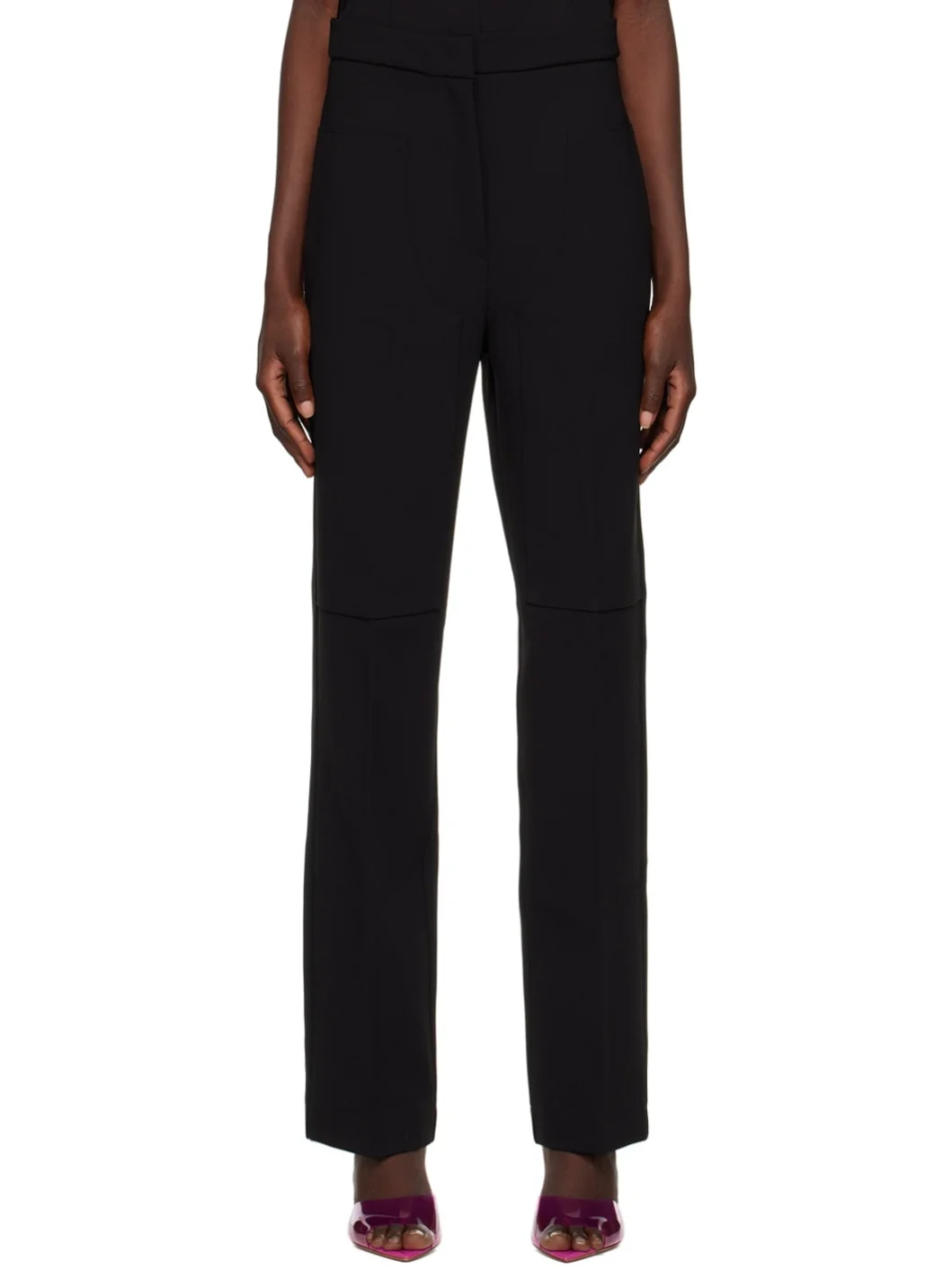 Relaxed-fit triacetate-blend crepe trousers. · Four-pocket styling · Zip-fly Supplier color: Black 63% triacetate, 37% polyester. Made in New Zealand 231438F087007