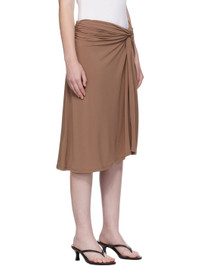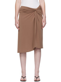 Stretch jersey midi skirt. · Gathering at elasticized waistband · Twisted detailing at front · Slit at front Part of the Elemental 06 collection. Supplier color: Chestnut 94% polyester, 6% spandex. Made in New Zealand 252438F092004