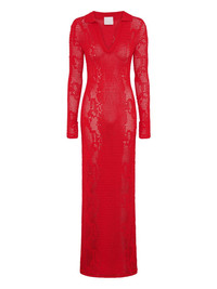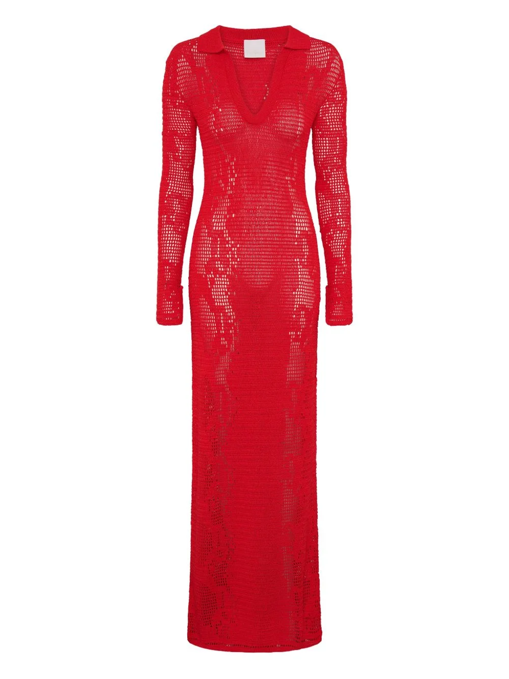 crochet maxi dress Highlights - Red - Crochet knit - Snakeskin pattern - Polo collar - Long sleeves - V-neck Imported Composition Outer: Fabric 100% Washing instructions Read Manufacturer Guidelines