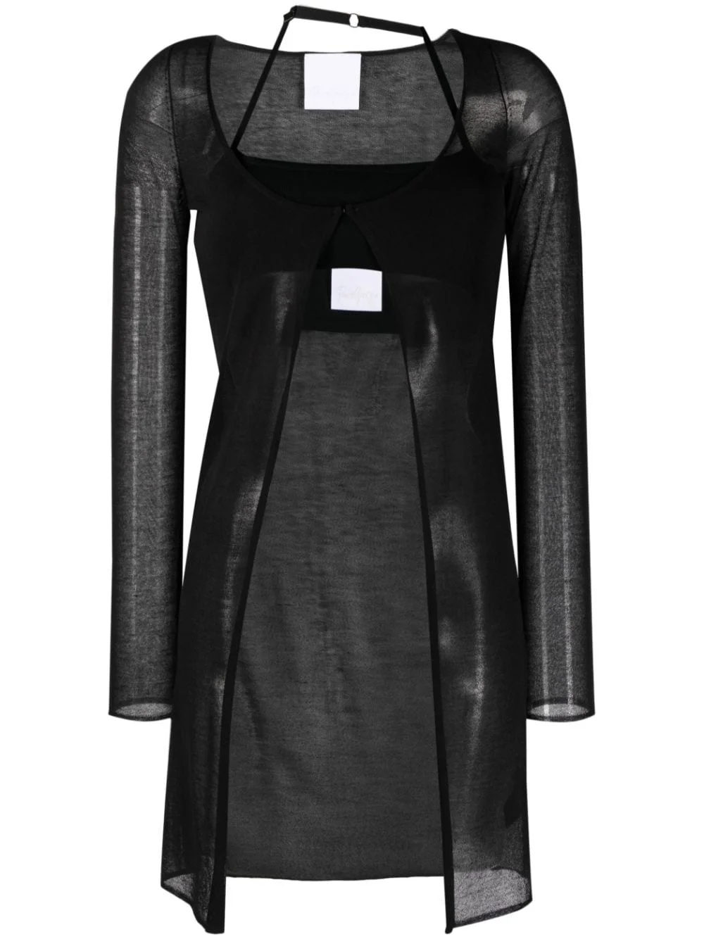 cut-out semi-sheer top Highlights - Black - Cut-out detailing - Patch detail - Square neck - Long sleeves - Straight hem Imported Composition Outer: Viscose 90%, Nylon 10% Lining: Viscose 65%, Nylon 19%, Polyester 13%, Elastane 3% Washing instructions Dry Clean Only