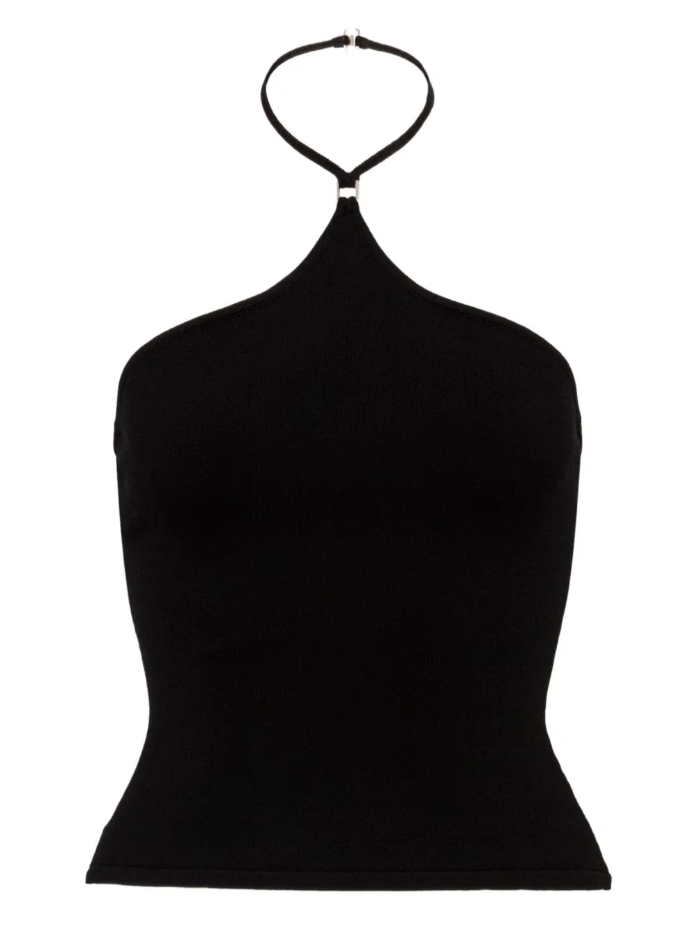 halter hardware top Highlights - Black - Halterneck - Hardware detail - Sleeveless - Straight hem Imported Composition Viscose 83%, Elastane 17% Washing instructions Read Manufacturer Guidelines