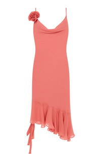 Julia Dress PRODUCT DETAILS - Pre-Fall 25' - Slim fit, cowl neckline with petite straps, ruflled hemline, mermaid silhouette midi dress - Lined - Composition: Silk Georgette - Zip Closure Through Back - *Dry Clean Only - Made in China