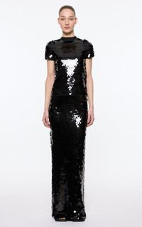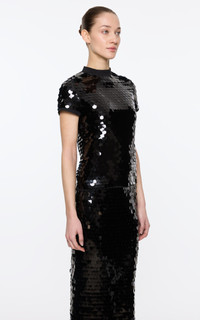LARGE SEQUIN PRODUCT DETAILS - Fall-Winter '25 - Slim fit, rounded neckline with cap sleeves, large sequined detailing throughout - Fully Lined - Composition: 95% Polyester 5% Spandex - Zip Fastening Through Back - *Dry clean only - Made in China
