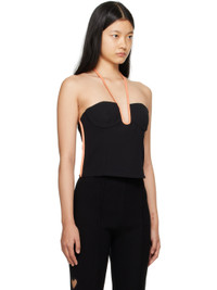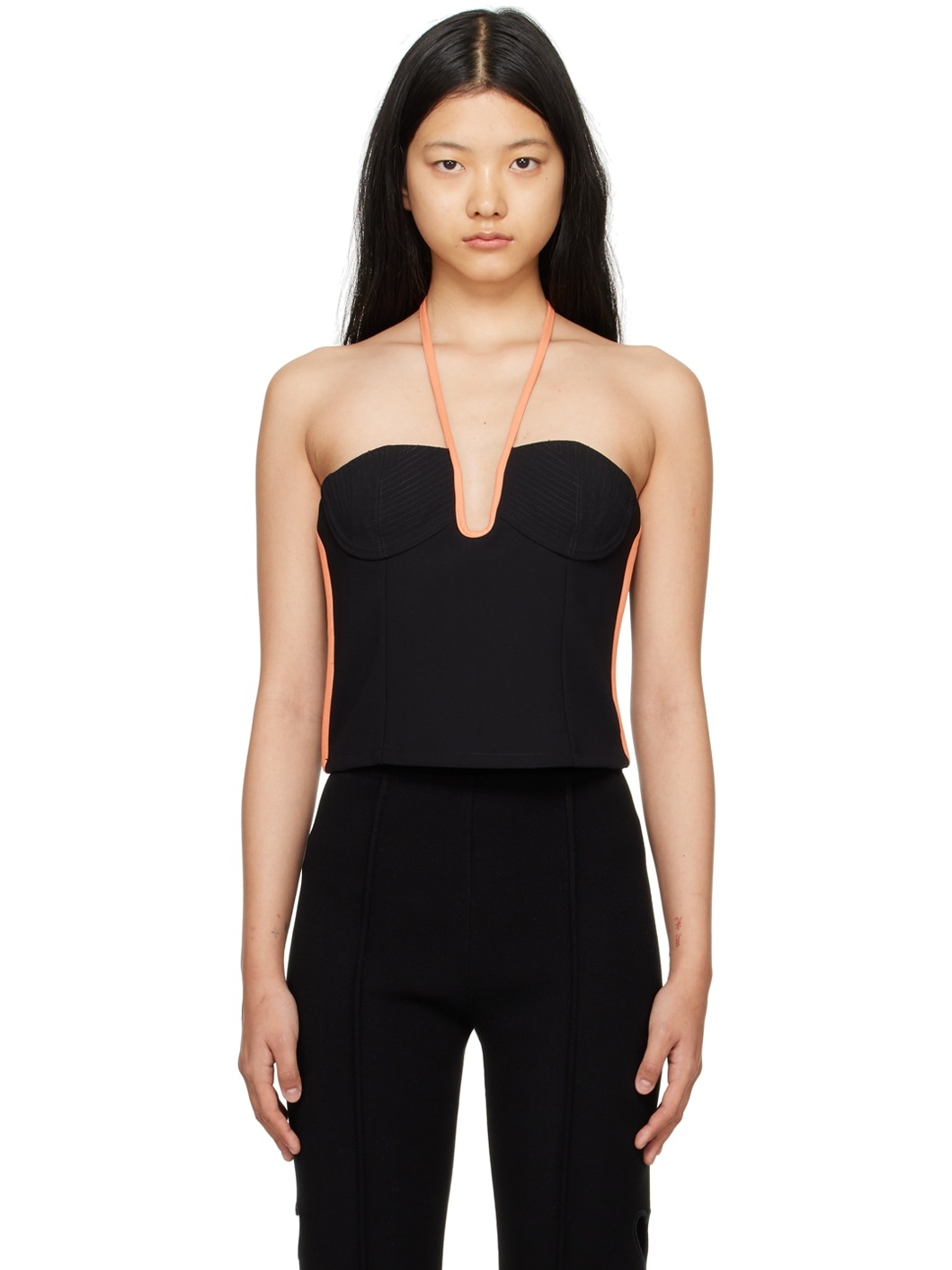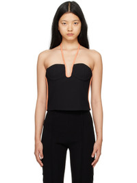Triacetate-blend crepon tank top. Faux-leather piping throughout. · Halter straps · Sweetheart neck · Darts at front · Cropped hem · Zip closure at back Supplier color: Black/Coral