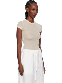 Sheer rib-knit stretch lyocell T-shirt. · Crewneck · Cropped hem · Cap sleeves Supplier color: Cream 92% lyocell, 8% spandex. Made in New Zealand 252438F110010