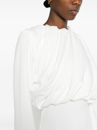 Ollie drapped midi dress Paris Georgia elegantly plays with proportions to create the Ollie dress. The entirely gathered top lends a voluminous draped effect, while the high-waisted skirt falls into a straight pencil silhouette. Highlights - White - Recycled polyurethane blend - Crepe texture - Round neck - Concealed side zip fastening - Long sleeves - Draped detailing - Fitted waistline - Column silhouette - Mid-length - Unlined - Straight hem Imported Composition Recycled Polyethylene 69%, Polyester 31% SIZE & FIT Model measurements Height 5 ft 10 in(1.78 m) Bust/Chest 31.49 in(80 cm) Hips 37 in(94 cm) Waist 23.62 in(60 cm) FittingInformation Designed for a loose fit at the chest with a close fit over the waist and hips Made from a midweight non-stretch fabric This piece fits true to size – take your usual size Washing instructions Hand Wash