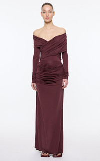 ELEVATED JERSEY PRODUCT DETAILS - Fall-Winter '25 - Slim fit, low rise, draped detailing throughout, column silhouette maxi - Lined - Composition: 93%Viscose 7%Spandex - Side Seem Zip Fastening - *Dry clean only - Made in China