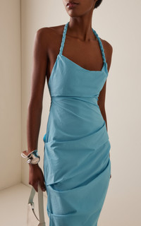 Essentials this cool are hard to come by—then again, you’d be hard-pressed to find a cooler duo than Georgia Cherrie and Paris Mitchell Temple, the New Zealanders at the helm, who previously ran an online shop that Vogue credited with “the best vintage.” Tailored from an intentional ‘crunch’ twill, ‘Romy’ is cut for a close fit with side slits through the hem to allow movement. The twisted halter neck strap sets the scene for a statement necklace and/or earrings. PRODUCT DETAILS - Resort ‘26 - Concealed zip fastening - Composition: 72% nylon, 28% cotton; Trim: 100% nylon - Dry clean - Designer color: Turquoise - Made in New Zealand
