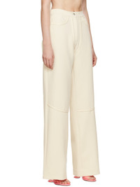 Triacetate-blend crepe trousers. Grained faux-leather trim throughout. · Paneled construction · Two-pocket styling · Zip-fly Available exclusively at SSENSE. Supplier color: Cream/Cream Body: 63% triacetate, 37% polyester. Trim: 100% polyurethane. Made in New Zealand 222438F087010