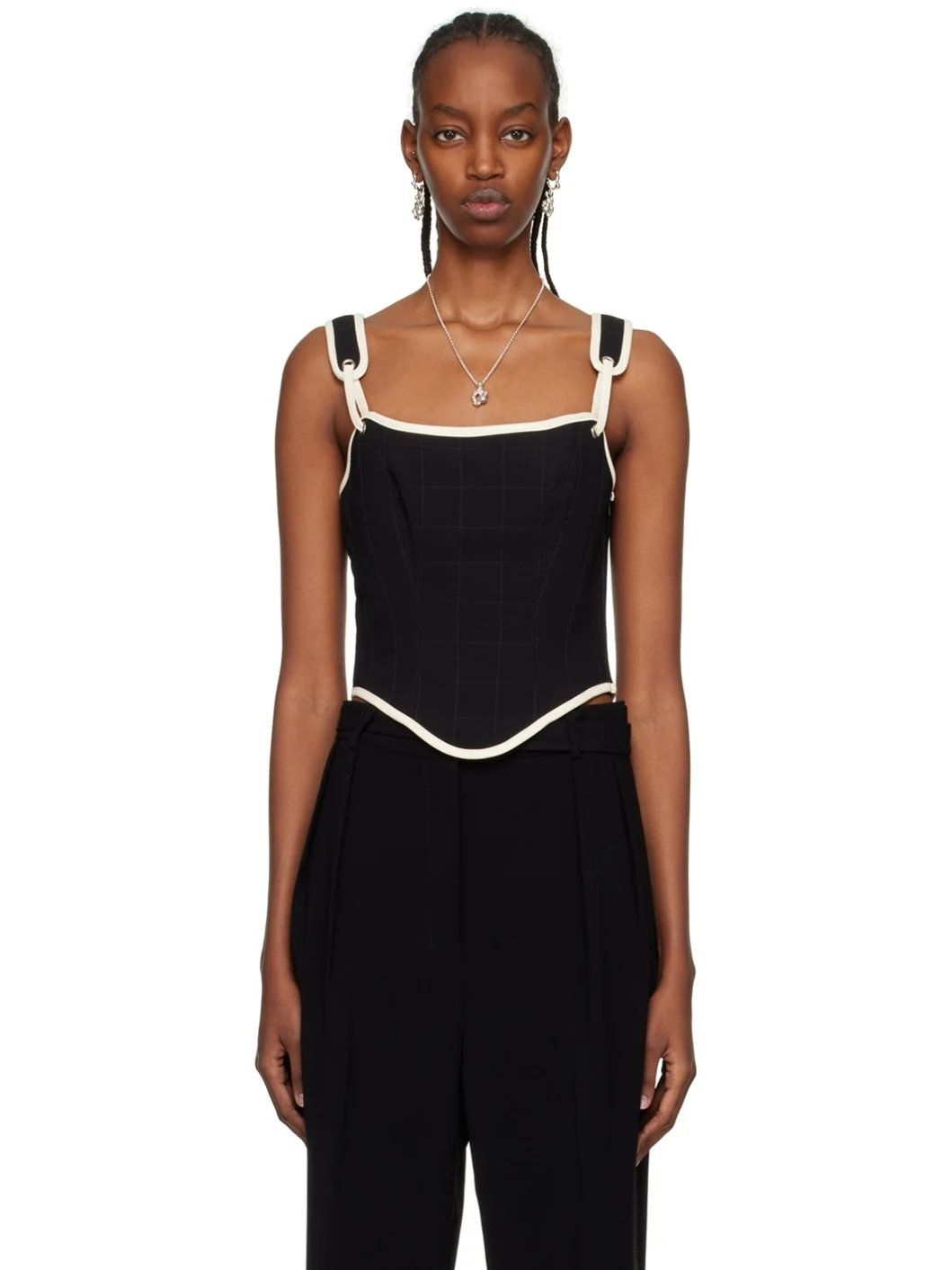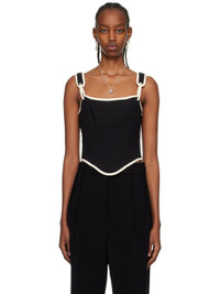 Quilted recycled polyester crepe bustier-style camisole. Grained faux-leather trim throughout. · Square neck · Asymmetric hem · Fixed shoulder straps · Zip closure at side seam · Full satin lining · Silver-tone hardware Part of the SSENSE exclusive Work Capsule. Supplier color: Black/Cream 100% recycled polyester. Made in New Zealand 231438F111019
