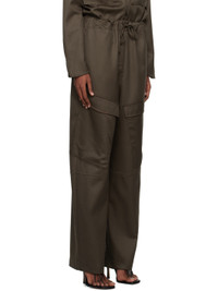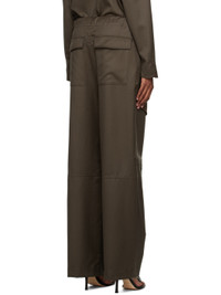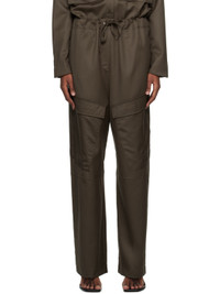 Relaxed-fit wool twill trousers. Rivet detailing throughout. · Paneled construction · Drawstring at elasticized waistband · Four-pocket styling · Mock-fly · Cargo pockets at front Part of the SSENSE exclusive Work Capsule. Supplier color: Chocolate 100% wool. Made in New Zealand 231438F087013