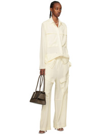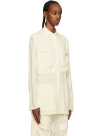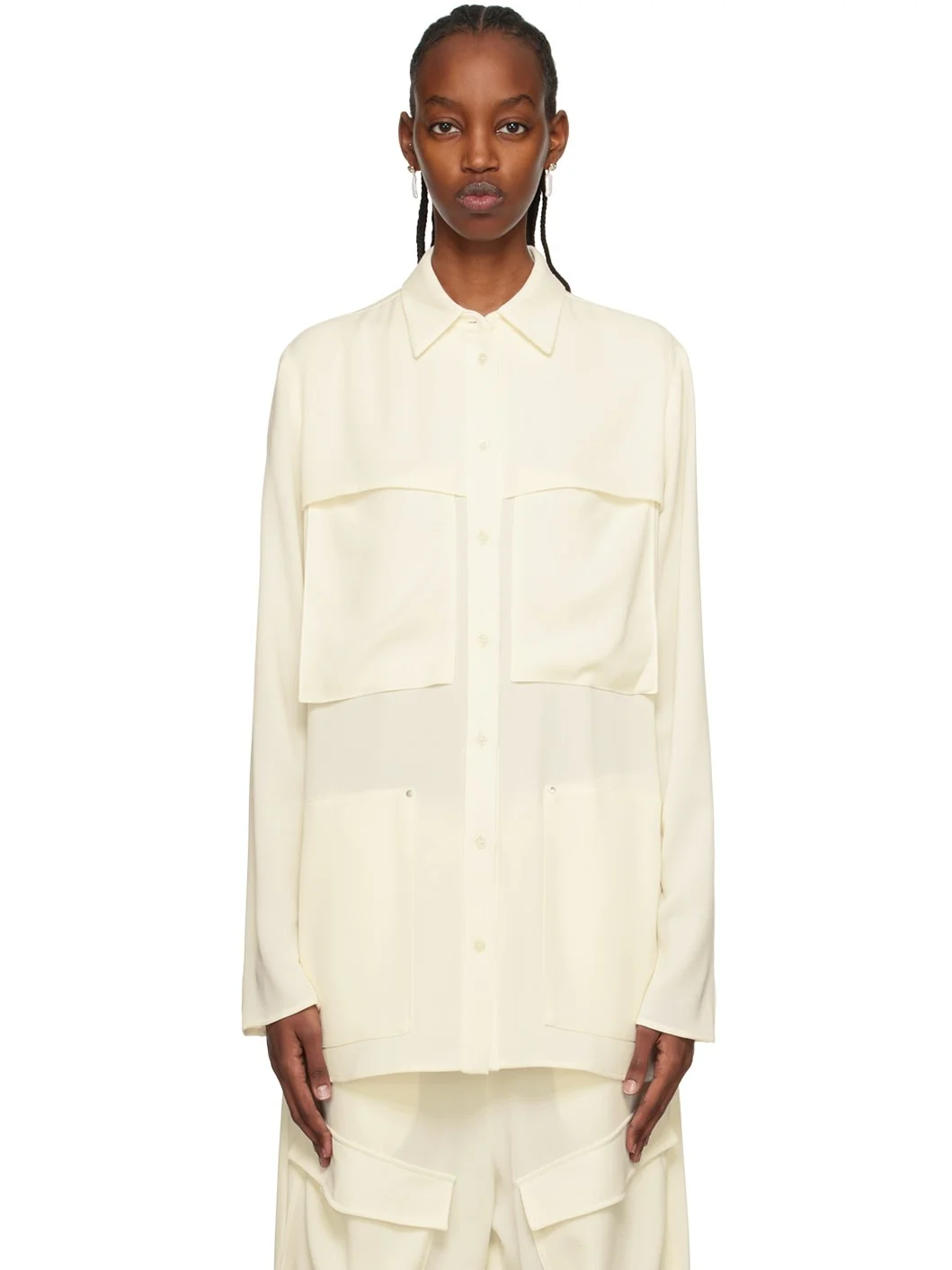 Paneled triacetate- and polyester-blend gauze shirt. Studded detailing throughout. · Spread collar · Button closure · Patch pockets at chest · Welt pockets at waist · Rivet detailing at front · Vented cuffs and side seams · Mother-of-pearl hardware Part of the SSENSE exclusive Work Capsule. Supplier color: Ivory 50% triacetate, 50% polyester. Made in New Zealand 231438F109004