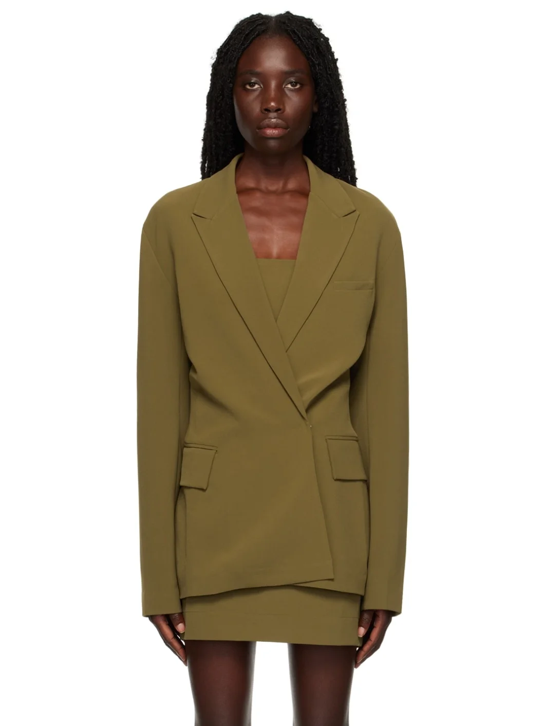 Paneled stretch polyester crepon blazer. · Notched lapel · Offset concealed hook-eye fastening · Welt pocket at chest · Flap pockets at waist · Dropped shoulders · Darts at back · Full satin lining Supplier color: Caramel Body: 95% polyester, 5% elastane. Lining: 55% polyester, 45% viscose. Made in China 231438F057000