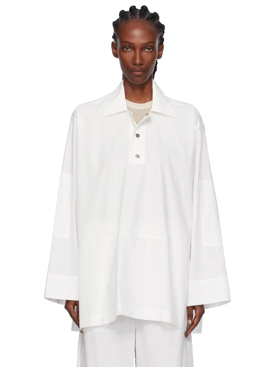 Cotton poplin overshirt. · Stand collar · Press-stud placket · Dropped shoulders Supplier color: White 100% cotton. Made in New Zealand 252438F109000