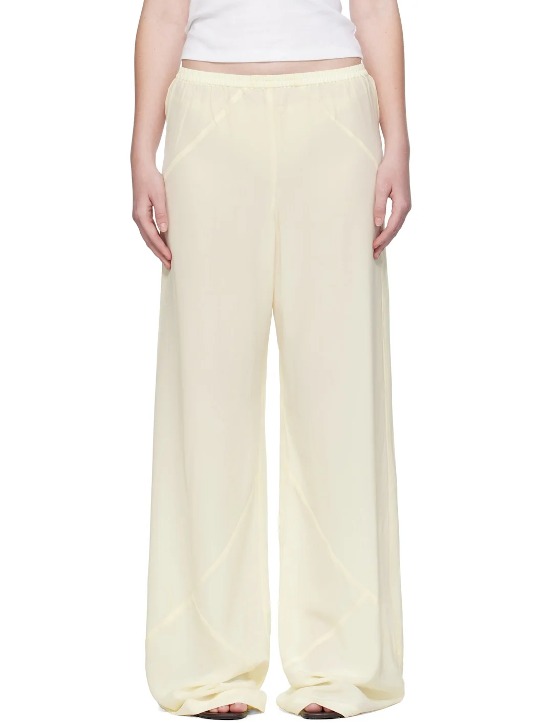 Silk crepe lounge pants. · Semi-sheer · Bias-cut · Elasticized waistband Part of the Elemental 06 collection. Supplier color: Sorbet yellow 100% silk. Made in New Zealand 252438F086000