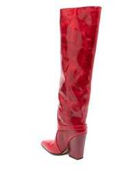 100mm Jane boots Highlights - Red - Calf leather - Side buckle fastening - Pointed toe - High block heel - Leather sole Made in Italy Composition Sole: Calf Leather 100% Outer: Calf Leather 100% Lining: Calf Leather 100% SIZE & FIT Measurement CIRCUMFERENCE 14.17 in(36 cm) HEEL 3.93 in(10 cm) HEIGHT 16.92 in(43 cm)