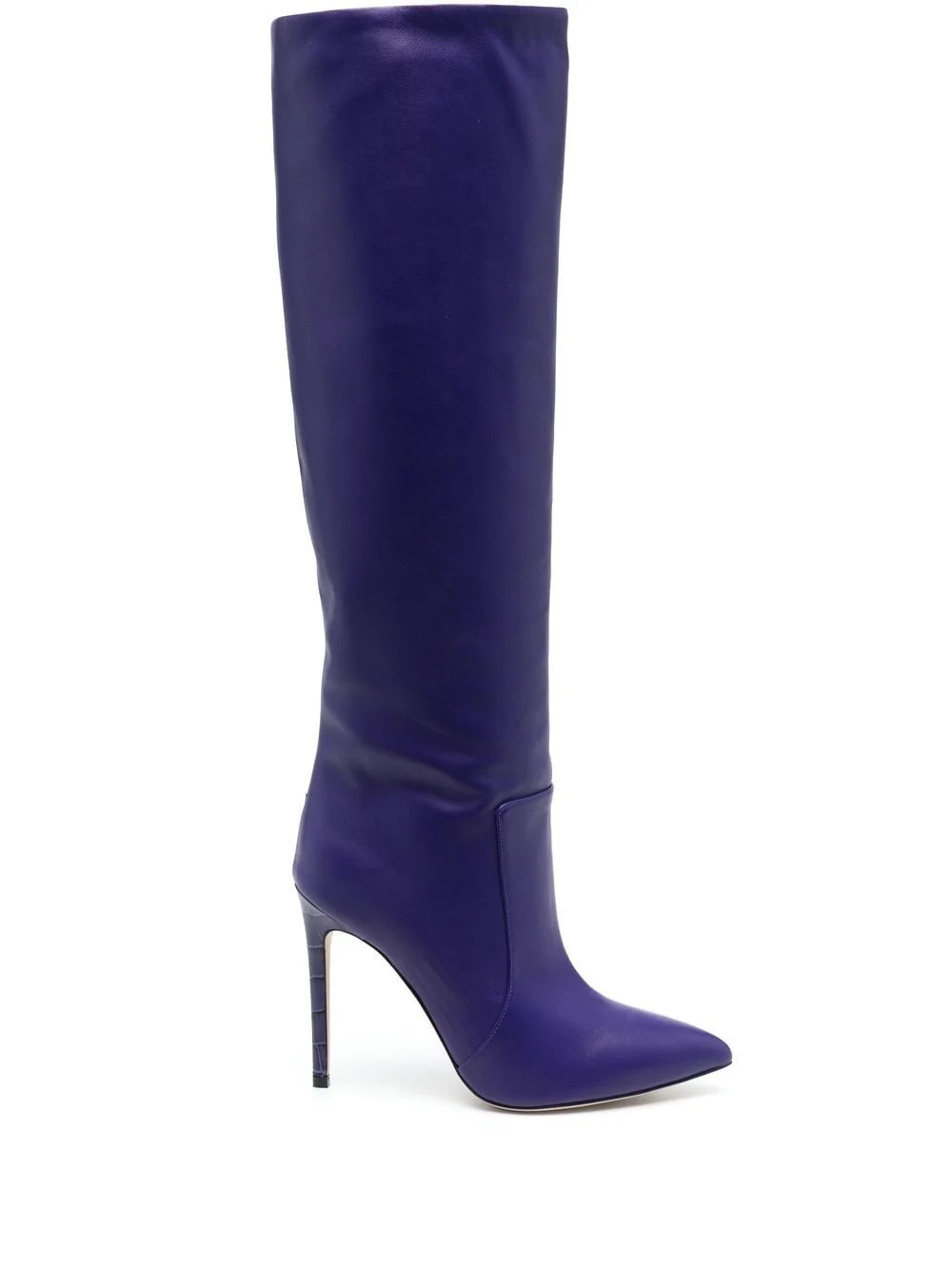knee-high 100mm boots ultraviolet calf leather knee-high pointed toe high stiletto heel Made in Italy Composition Lining: Calf Leather 100% Sole: Calf Leather 100% Outer: Calf Leather 100% SIZE & FIT Measurement CIRCUMFERENCE 15.74 in(40 cm) HEEL 4.13 in(10.5 cm) HEIGHT 16.53 in(42 cm)