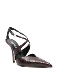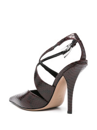 105mm Laila pumps Highlights - Bordeaux red - Buckle-fastening ankle strap - Stiletto heel - Branded insole - Embossed crocodile effect Made in Italy Composition Sole: Calf Leather 100%, Rubber 100% Outer: Calf Leather 100% Lining: Calf Leather 100% SIZE & FIT Measurement HEEL 4.33 in(11 cm)