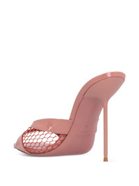 105mm Lidia patent-leather mules Highlights - Pink - Patent leather - Mesh insert - Stiletto heel - Open toe Made in Italy Composition Outer: Patent Leather 100%, Mesh 100% SIZE & FIT Measurement HEEL 4.13 in(10.5 cm)
