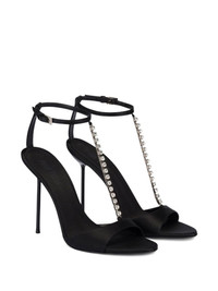105mm Lidia chain heel sandals Highlights - Black - Chain embellishment - Open toe - Stiletto heel - Ankle strap - Buckle fastening Made in Italy Composition Outer: Satin 100%, Crystal 100% Lining: Satin 100% Sole: Calf Leather 100% SIZE & FIT Measurement HEEL 4.13 in(10.5 cm)