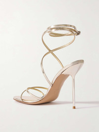 EDITORS'NOTES Paris Texas' 'Liz' sandals have winding straps that elegantly frame your feet. Made in Italy from metallic leather, they're set on pin-thin heels that offer 105mm of lift. Wear yours with everything from jeans to gowns. SIZE & FIT - Fits true to size, take your normal size - Those with wide feet may wish to take the next half size up - Italian sizing DETAILS & CARE - Heel measures approximately 105mm/ 4 inches - Gold leather (Calf) - Buckle-fastening strap