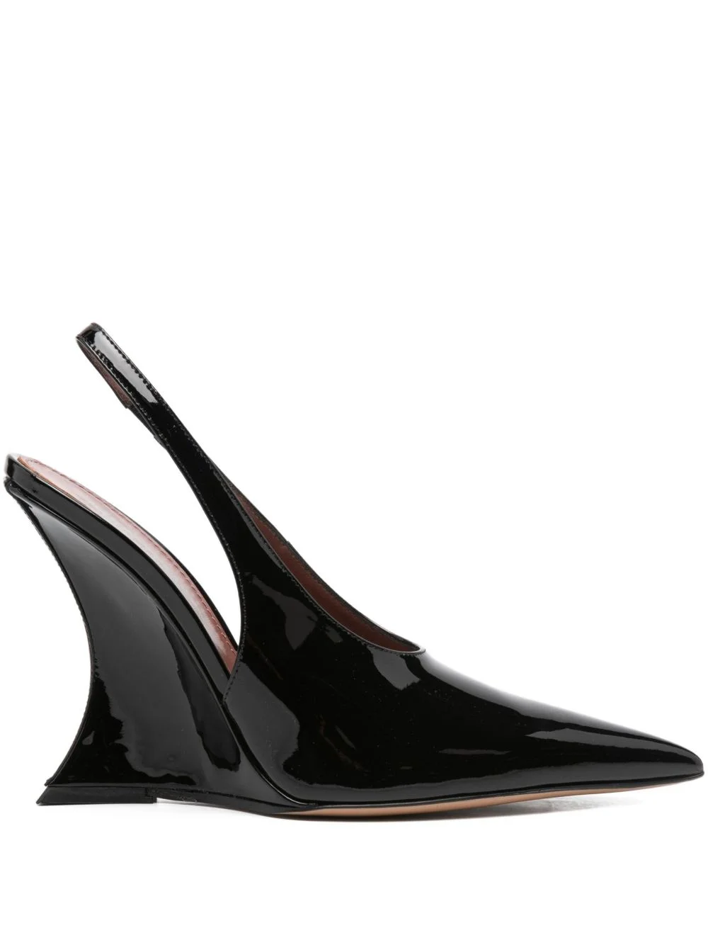 105mm slingback wedge pumps Highlights - Black - Pointed toe - Slingback strap - Wedge heel - Patent finish - Sculpted heel Made in Italy Composition Outer: Patent Calf Leather 100% Lining: Calf Leather 100% Sole: Calf Leather 100% SIZE & FIT Measurement HEEL 4.13 in(10.5 cm)