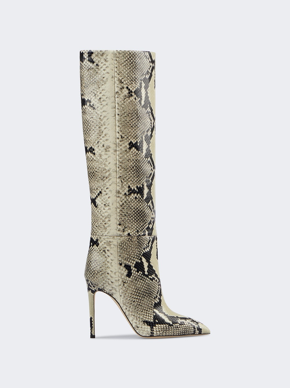 Details - Printed python leather boots - Stiletto heel - Barrel shaft - Pointed toe - Heel height: 105mm / 4.1 in - Listed in EU sizing Brand Style: PX133 XPRPT0051 Designer/Brand: PARIS TEXAS
