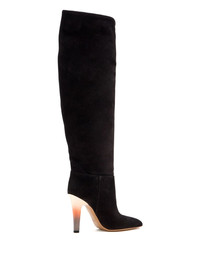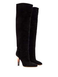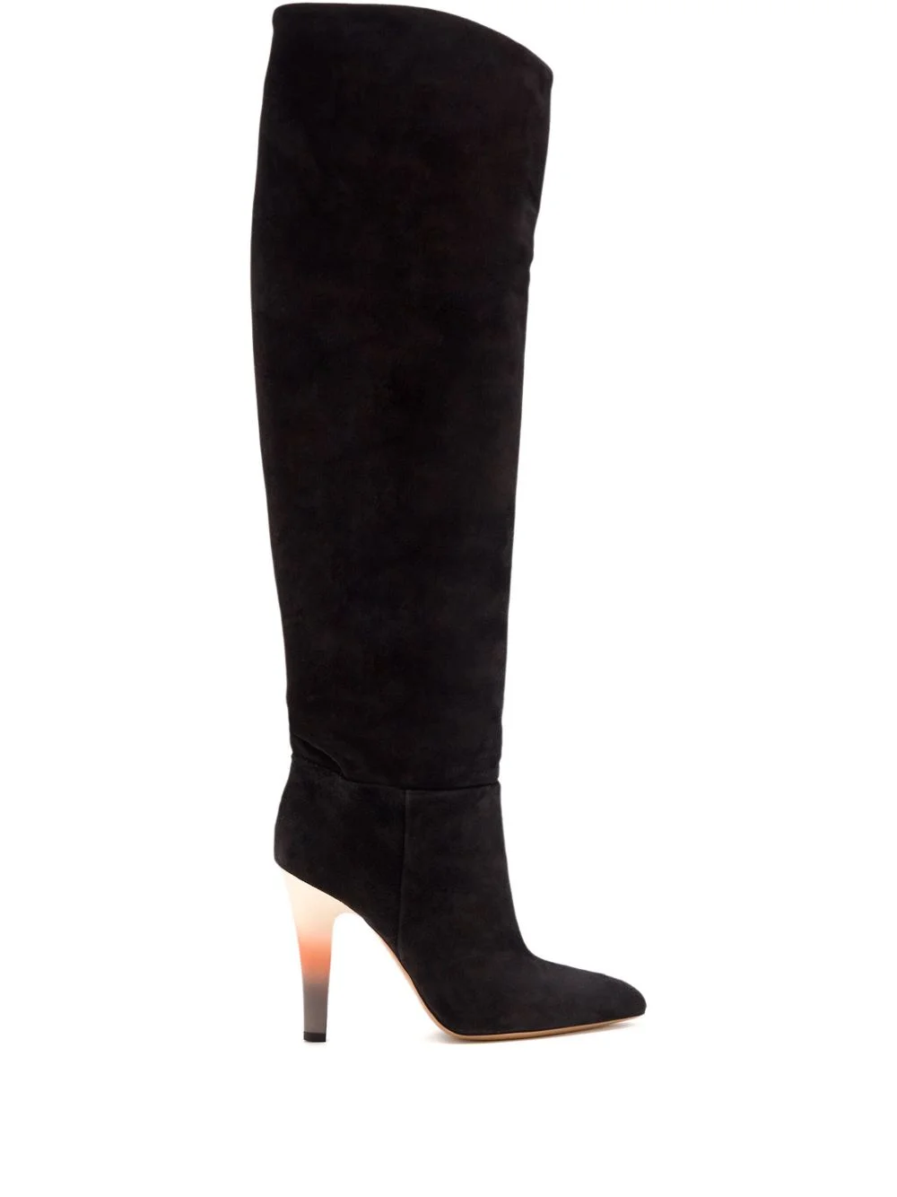 10mm pointed suede heel boots Highlights - Black - Suede - Pointed toe - Heel - Over-the-knee style - Gradient effect on heel Made in Italy Composition Outer: Suede 100% Lining: Calf Leather 100% Sole: Calf Leather 100% SIZE & FIT Measurement HEEL 3.93 in(10 cm)