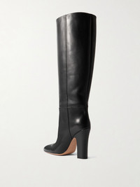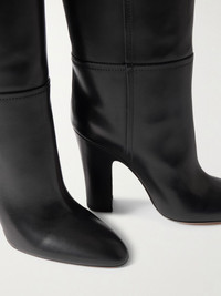Paris Texas melds Western spirit and French sophistication. These 'Lavinia' boots are made from panels of soft leather with almond toes and chunky 100mm block heels. Opt for shorter hemlines to show off their wide shape. Size & Fit - Fits true to size, take your normal size - Italian sizing Details & Care - Heel measures approximately 100mm/ 4 inches - Black leather (Calf) - Pull on