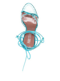 110mm Linda sandals Highlights - Turquoise blue-green - Front lace-up fastening - Crossover strap at the toe - 110mm stiletto heel Made in Italy Composition Sole: Calf Leather 100% Lining: Calf Leather 100% Outer: Calf Leather 100% SIZE & FIT Measurement HEEL 4.33 in(11 cm)