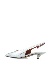 35mm slingback pointed-toe pumps Highlights - Silver-tone - Pointed toe - Slingback strap - Kitten heel - Buckle fastening Made in Italy Composition Outer: Bos Taurus 100% Lining: Calf Leather 100% Sole: Calf Leather 100%, Rubber 100% SIZE & FIT Measurement HEEL 1.37 in(3.5 cm)