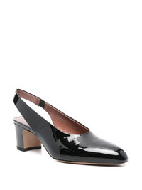 black elasticated slingback strap branded footbed low block heel Size & Fit Model Measurements: Bust: 0cm Height: 0cm Hips: 0cm Waist: 0cm HEEL: 5.5cm Fabric and Care Designer Style ID: PX1547XVN01 Designer Colour: BLACK Composition: Sole: Leather 100%; Outer: Patent leather 100%; Lining: Leather 100%Made in Italy