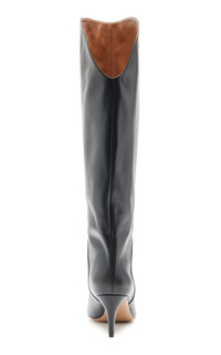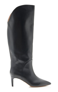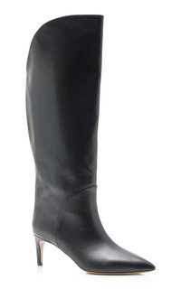 High-end Italian footwear brand Paris Texas was established in 2015 by Annamaria Brivio. As the name suggests, Paris Texas plays with contrast, capturing the brand’s dual soul. Parisian chic sensuality meets the fearless audacity of Texan cowboys. Crafted from supple calfskin leather, the 'Gaia' boots feature a barrel shaft, almond toe, curved trim, and slim midi heel. PRODUCT DETAILS - Heel measures approximately 60mm / 2.5" - Slip on - Composition: calf leather - Made in Italy