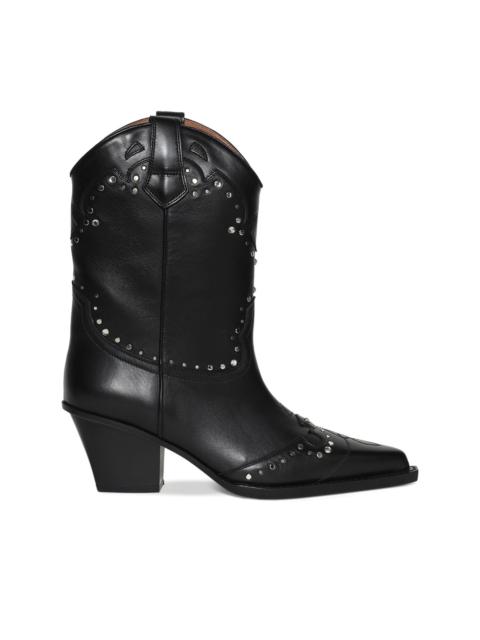 60mm Janice suede studded boots Highlights - Maroon - Suede upper - Pointed toe - Low block heel - Decorative stitching - Crystal embellishments Made in Italy Composition Outer: Leather 100% Lining: Leather 100% Sole: Leather 100% SIZE & FIT Measurement HEEL 2.36 in(6 cm)