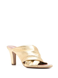 80mm Maria sandals Highlights - Gold-tone - Slip-on style - Open back - Metallic finish - Crossover strap at the toe Made in Italy Composition Lining: Calf Leather 100% Outer: Calf Leather 100% Sole: Rubber 100%, Calf Leather 100% SIZE & FIT Measurement HEEL 3.14 in(8 cm)