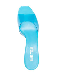 70mm Anja sandals Paris Texas marries timeless silhouettes with intriguing materials for an elevated take on classic footwear. The brand updates its Anja leather mules with a turquoise colourway and a transparent PVC strap for a more contemporary take. The pair sit atop a 70mm block heel. Highlights - Turquoise - Leather - Transparent strap - Slip-on style - Open toe - Mid block heel - Leather sole Made in Italy Composition Outer: Plastic 100% Sole: Calf Leather 100% Lining: Calf Leather 100% SIZE & FIT Measurement HEEL 2.95 in(7.5 cm) Sole height 0.39 in(1 cm)