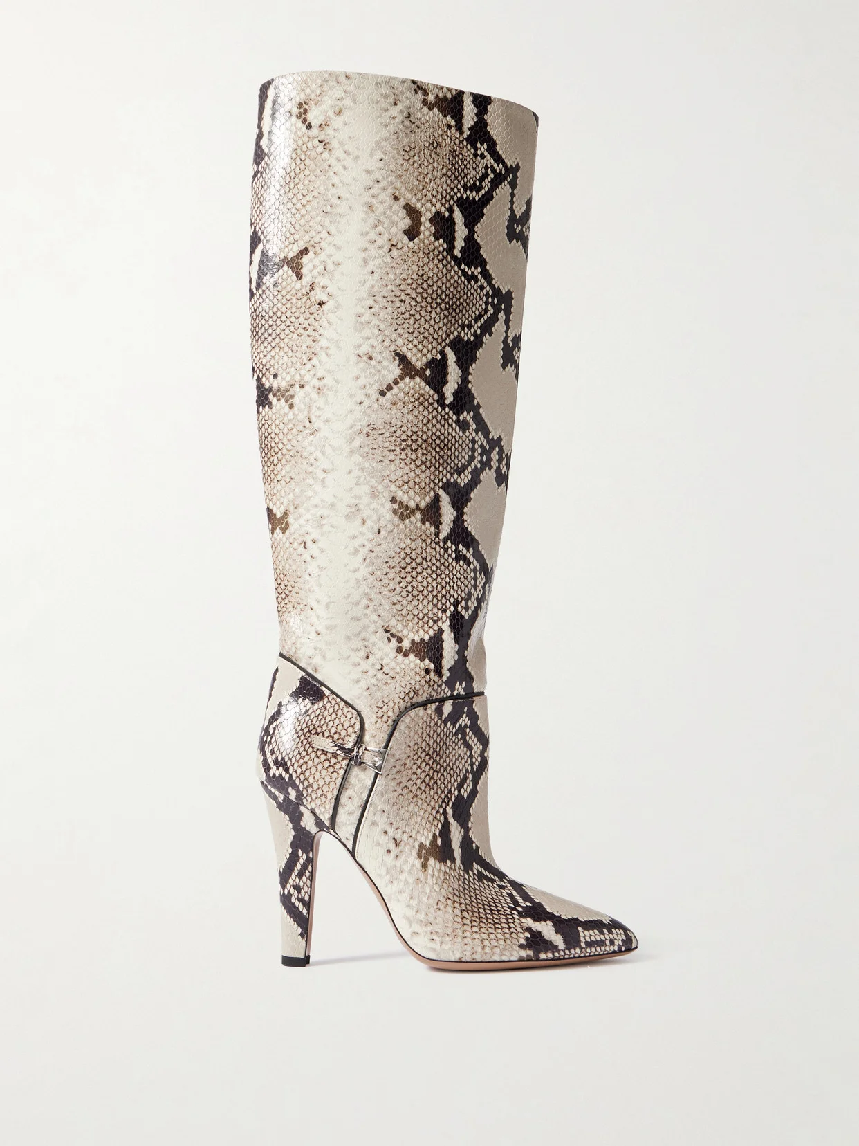 Elsa Buckled Snake-effect Leather Knee Boots