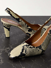 Belle snake-effect leather slingback pumps Snake print