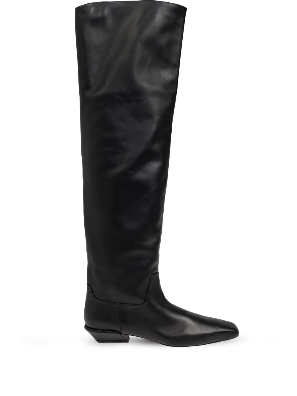 Bettina boots Highlights - Black - Calf leather - Smooth grain - Slip-on style - Cuban heel - Pointed toe - Branded leather insole - Leather sole - Above-knee length Made in Italy Composition Outer: Calf Leather 100% Lining: Calf Leather 100% Sole: Calf Leather 100% SIZE & FIT Measurement HEEL 1.18 in(3 cm) CIRCUMFERENCE 17.32 in(44 cm) HEIGHT 23.22 in(59 cm)