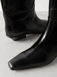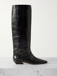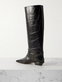 Paris Texas' 'Bettina' knee boots recall cowboy styles, but sharpened up to feel more sophisticated. Set on a low Cuban heel, they're made from croc-effect leather that's buffed to a high shine. Size & Fit - Fits true to size, take your normal size - Narrow at the toe - Italian sizing Details & Care - Heel measures approximately 25mm/ 0.9 inches - Black croc-effect leather (Calf) - Pull on