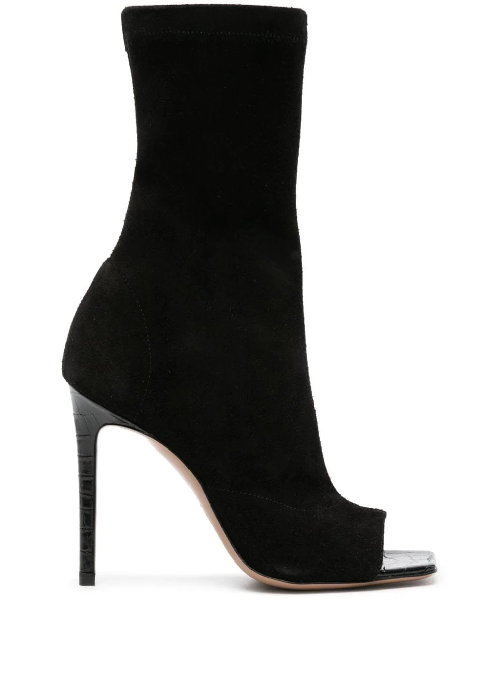 105mm suede boots These Amanda open-toe boots from Paris Texas are crafted from supple black suede and sit atop a sleek stiletto heel. Highlights - Black - Calf suede - Mid-calf length - Side zip fastening - Square open toe - Branded leather insole - Leather outsole - 105mm stiletto heel Made in Italy Composition Suede 100% SIZE & FIT Measurement CIRCUMFERENCE 9.05 in(23 cm) HEEL 4.13 in(10.5 cm) HEIGHT 7.48 in(19 cm)