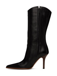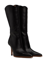 Mid-calf grained leather boots in black. · Pointed toe · Zip closure at inner side · Grained calfskin lining · Leather stiletto heel with rubber injection · Leather sole · Heel: H3.5" Supplier color: Black Upper: leather. Sole: leather, rubber. Made in Italy 241616F114000