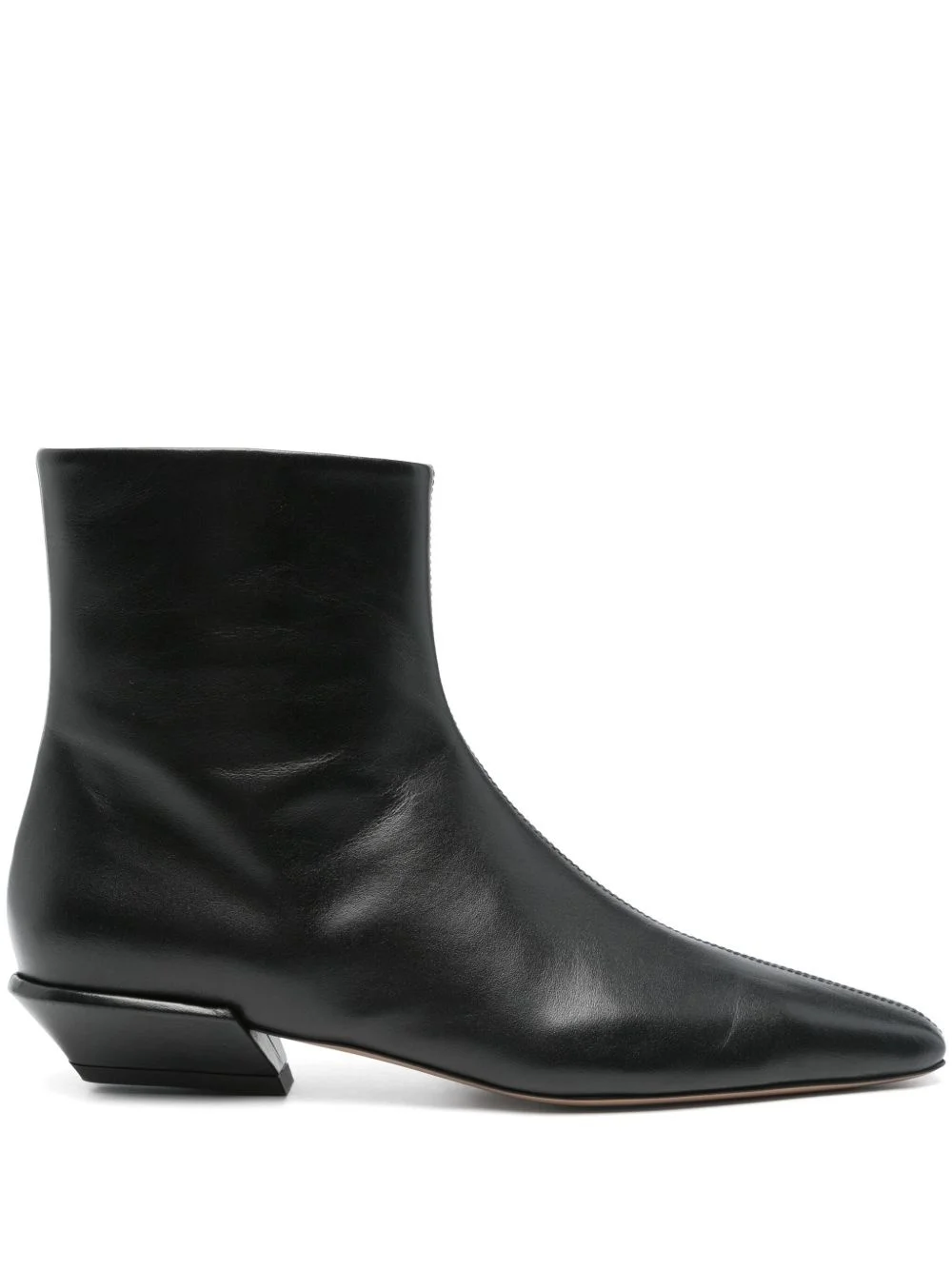 Bettina ankle boots Highlights - Black - Side zip fastening - Flat leather sole - Branded leather insole - This piece comes complete with a protective dust bag. Made in Italy Composition Lining: Calf Leather 100% Sole: Calf Leather 100% Outer: Calf Leather 100% SIZE & FIT Measurement HEEL 1.18 in(3 cm)