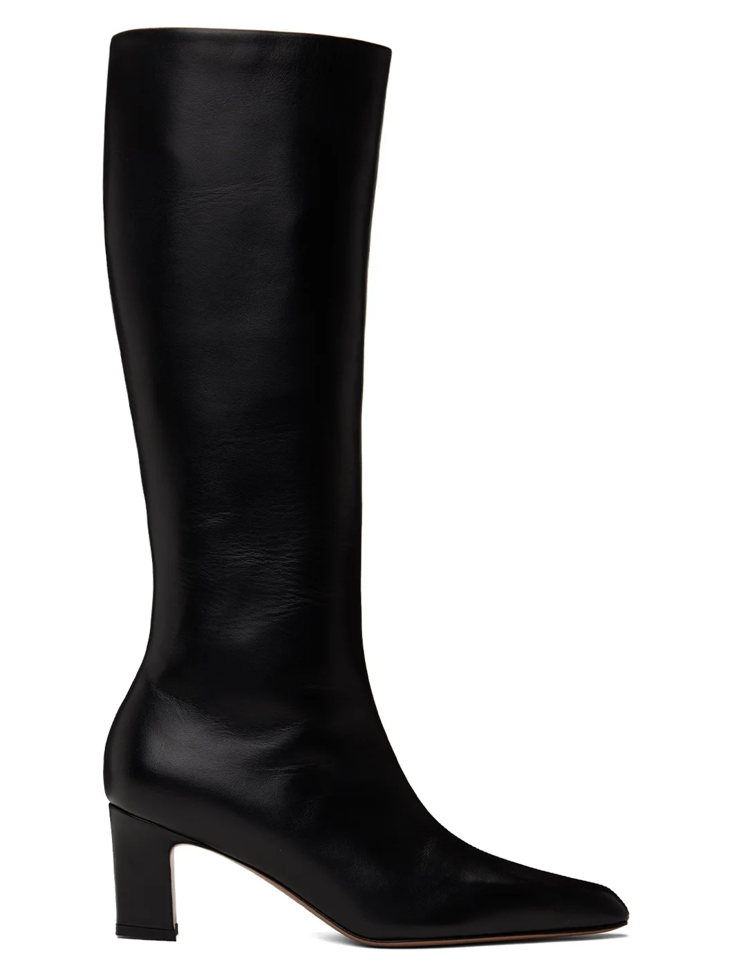 Knee-high buffed calfskin boots in black. · Pointed toe · Zip closure at inner side · Buffed leather lining · Covered heel with rubber injection · Leather sole · Heel: H2.75" Supplier color: Black Upper: calfskin. Sole: leather, rubber. Made in Italy 242616F115000