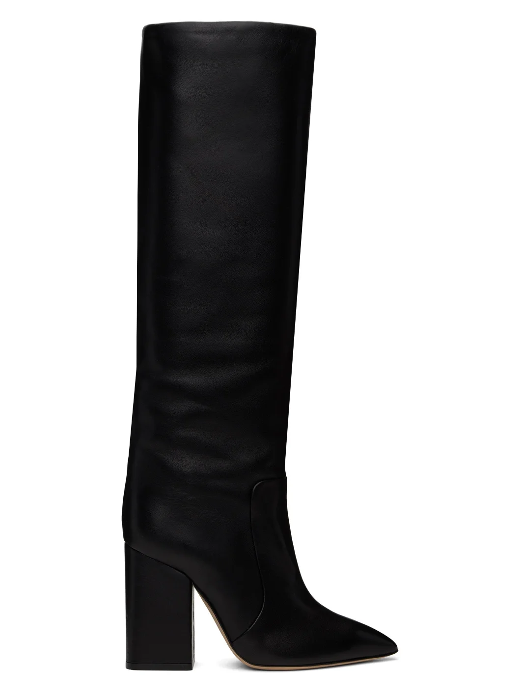 Knee-high nappa leather boots in black. · Pointed toe · Grained leather lining · Covered block heel with rubber injection · Nubuck sole · Heel: H3" Supplier color: Black Upper: leather. Sole: leather, rubber. Made in Italy 242616F115006