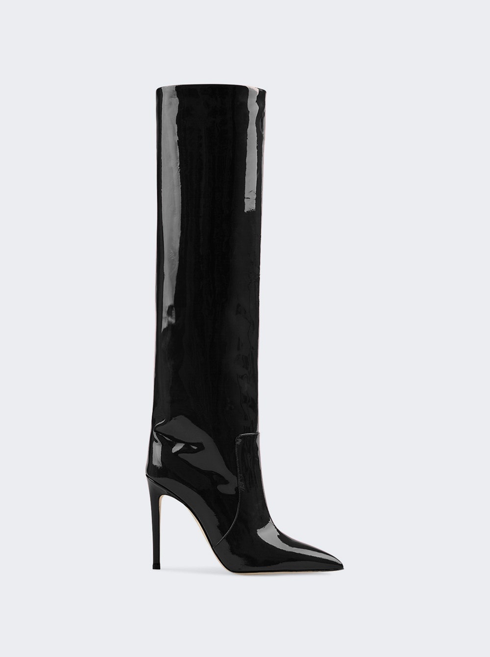 Details - Black patent leather stiletto boots - Barrel shaft, pointed toe, pin-thin heel - Heel height: 105mm / 4.1in Brand Style: PX501 XVN010007 Designer/Brand: PARIS TEXAS