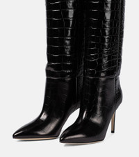 A label-signature design, these black knee-high boots encapsulate Paris Texas's balance of timelessness and modernism. Made in Italy from croc-effect calf leather, they're defined by piercing point toes and sharp stiletto heels. Showcase yours with mini-length hems. Product Details - Upper: calf leather - Sole: leather insole and sole - Toe shape: pointed toe - Made in Italy - Designer color name: Carbone - Item number: P00556940 Size & Fit - True to size - European sizes - 8,5cm-3.5" heel (size EU 38) - 42cm-16.5" shaft height (size EU 38) - 37cm-14.5" shaft width (size EU 38) - shaft width measured on largest part of boot