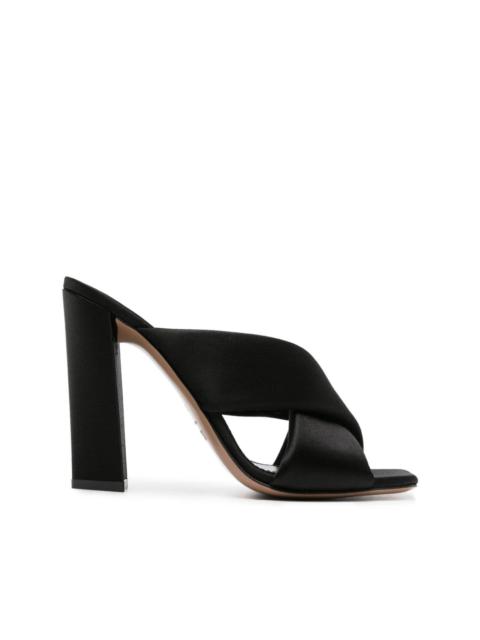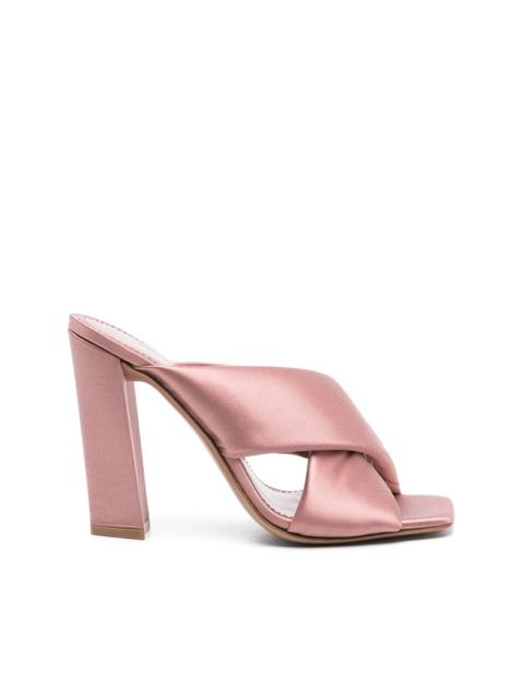 Dafne 110mm satin sandals Highlights - Dark pink - Satin weave - Crossover strap detail - Slip-on style - Square open toe - Branded leather insole - 110mm block heel - Leather outsole Made in Italy Composition Lining: Calf Leather 100% Sole: Calf Leather 100% Outer: Satin 100% SIZE & FIT Measurement HEEL 3.93 in(10 cm) Sole height 0.39 in(1 cm)